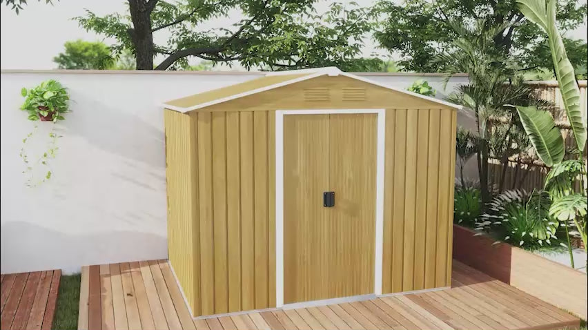 8ft x 6ft Golden Shed With Sliding Doors (Wood Effect)