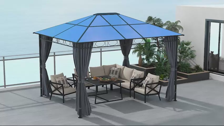 Grey 3m x 3.6m Hardtop Gazebo with UV Resistant Polycarbonate Roof