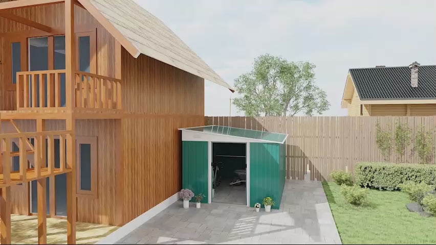 11.3ft x 9.2ft Green Garden Shed With Double Sliding Doors and 2 Air Vents