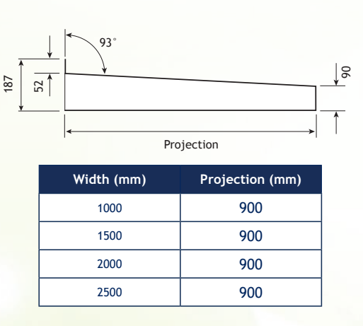 Standard projection: 900mm – provides a generous shelter over typical entrances.
