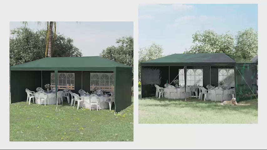 Green 6m x 3m Party Tent with Windows and Side Panels