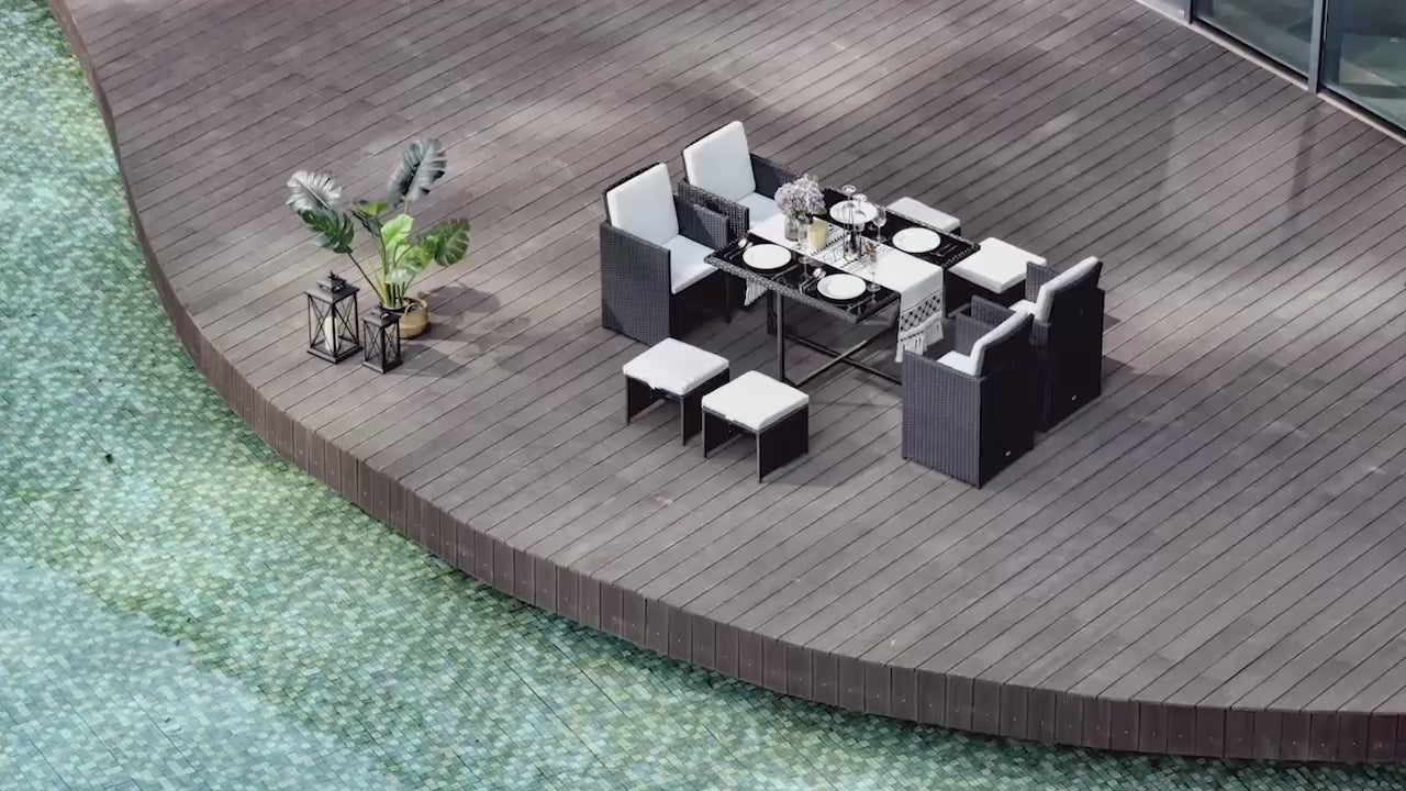 9 Piece Rattan Dining Set With Stylish Black Tempered Glass Table Top