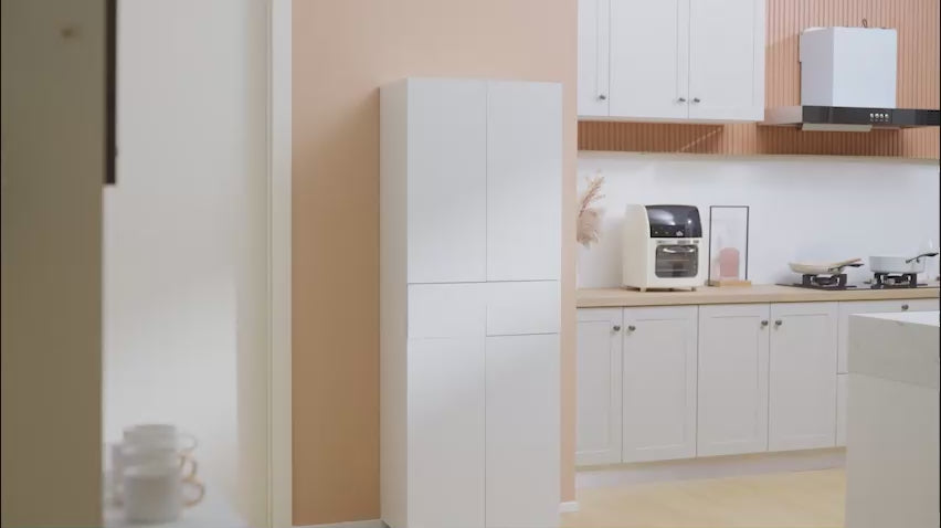 Freestanding Kitchen Storage Cabinet with 4 Doors and 6-Tier Shelving in White