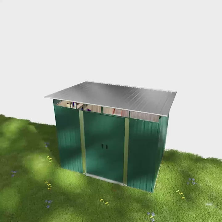 - Robust Corrugated Steel Construction: The sturdy metal storage shed is constructed from corrugated steel, ensuring it remains stable and secure while safeguarding your belongings.