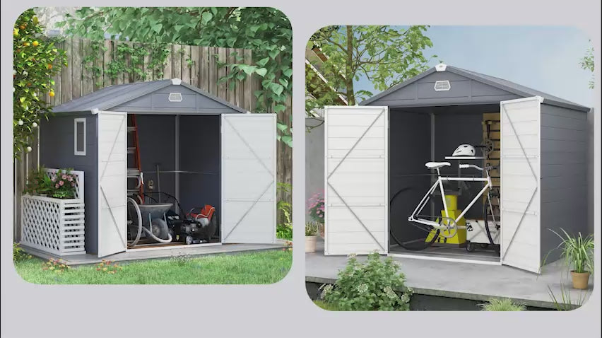 - Spacious outdoor storage shed measuring 7.9ft x 6.2ft - perfect for garden tools, bikes, and outdoor gear.