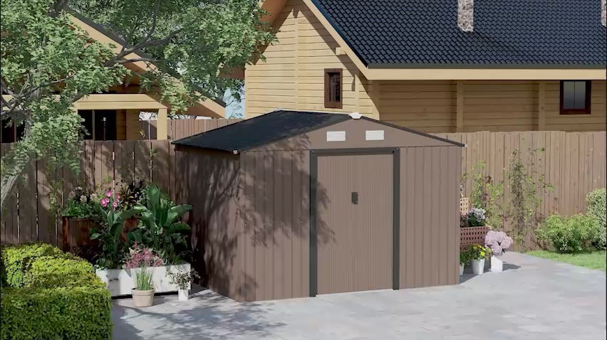 Robust Steel Structure: Crafted with a sturdy steel frame, this metal shed ensures the safety and security of your valuable equipment. Its protective paint coating offers reliable mild weather resistance, while built-in ventilation slots keep the interior fresh.