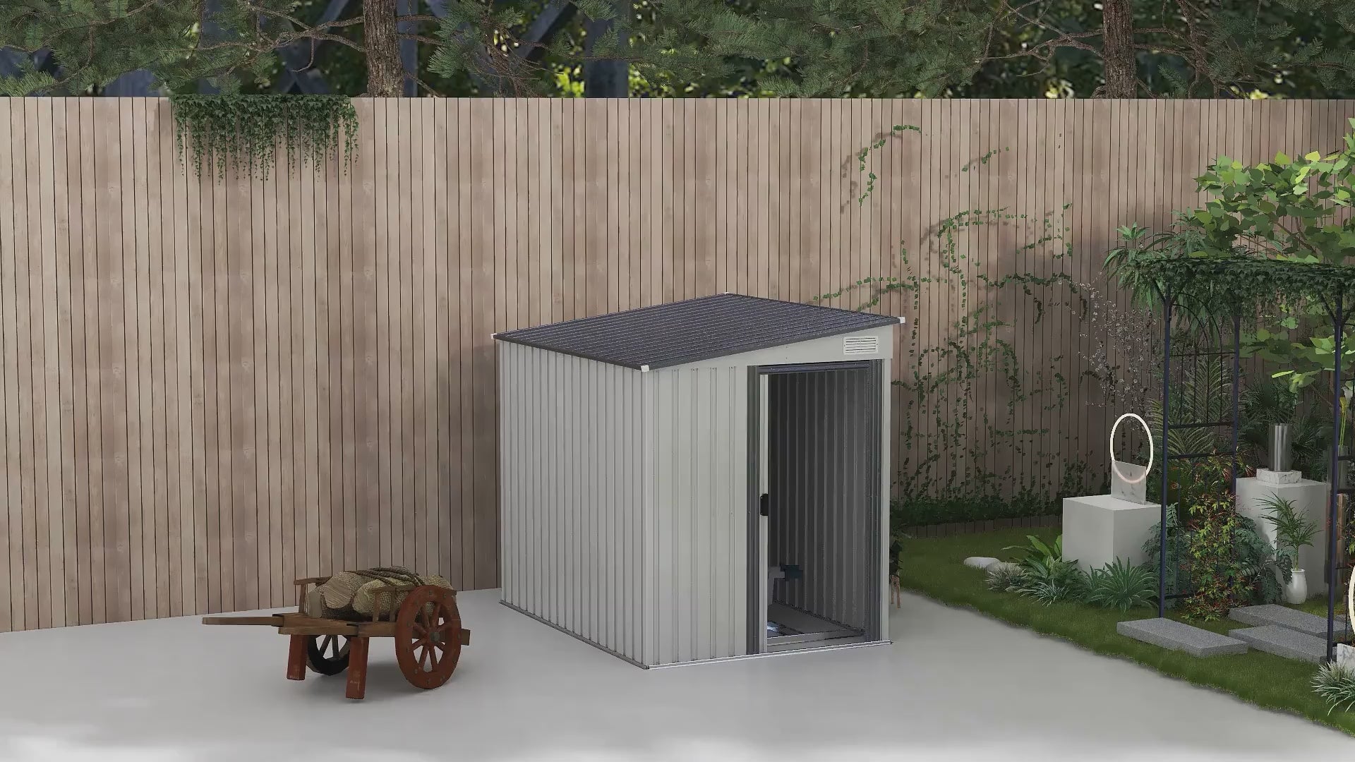 - Sturdy and Weatherproof: Made with galvanized steel, this slope-roofed metal shed is built to resist water and UV damage, offering a long-lasting alternative to wooden sheds.