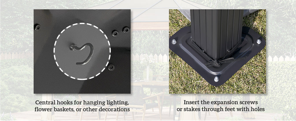 No distractions. No wobbling. With 12 ground stakes and 8 expansion screws, your gazebo stays secure—ensuring the only thing that moves your guests is the emotion of your event.