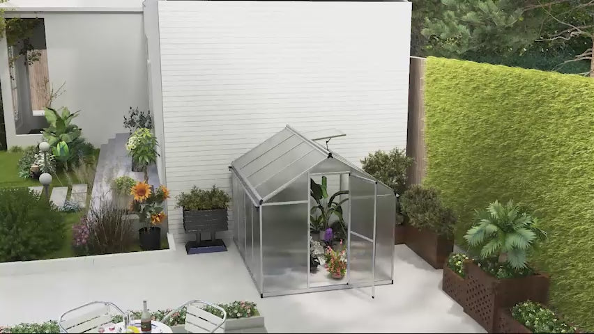 6x6ft Silver Polycarbonate Walk-In Greenhouse with Sliding Door