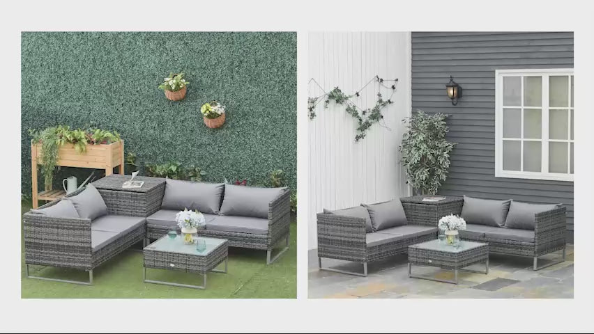 4 Seater Mixed Grey Corner Rattan Sofa With Glass Top Table and Storage Unit
