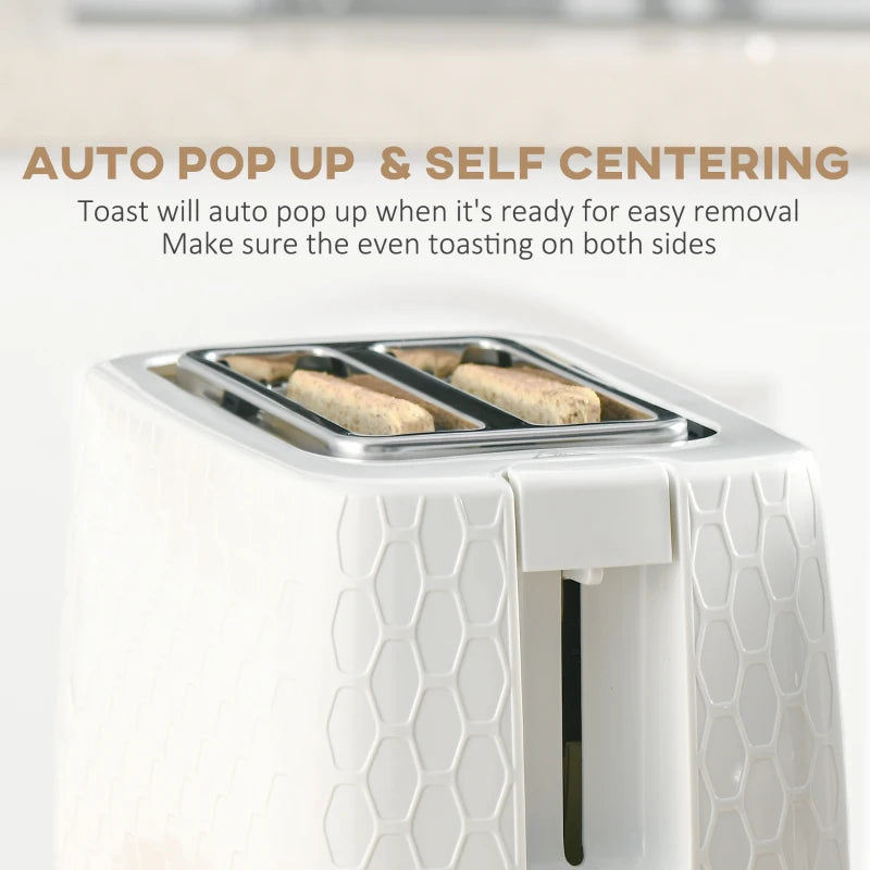 - 1.7L fast-boil kettle and matching two-slice toaster with a chic honeycomb design