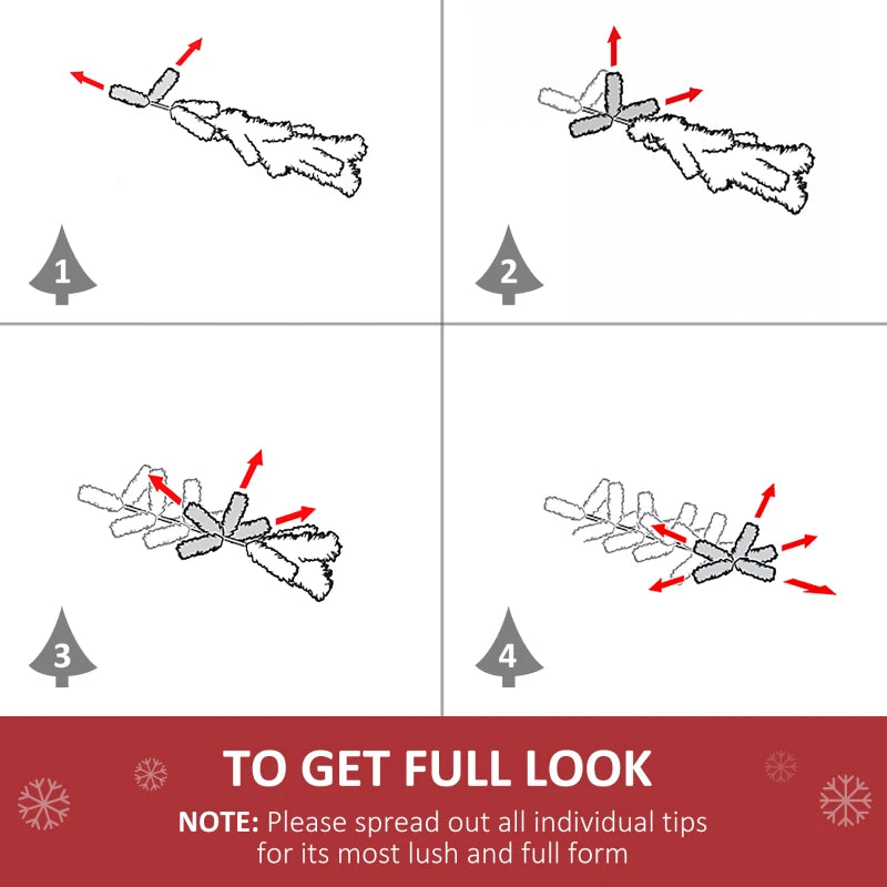 - RECOMMENDED SETUP: For optimal fullness, start from the bottom and work your way up, spreading each branch in a spiral motion;
