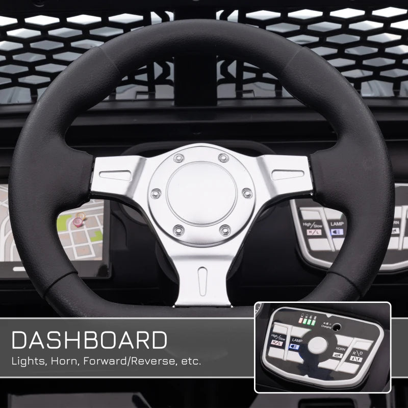 - Adventure-Ready Off-Road Truck: With a rugged SUV design, this kids’ electric car sparks outdoor fun. LED headlights, realistic dashboard gauges, and an authentic steering wheel make every ride feel like a real off-road adventure.