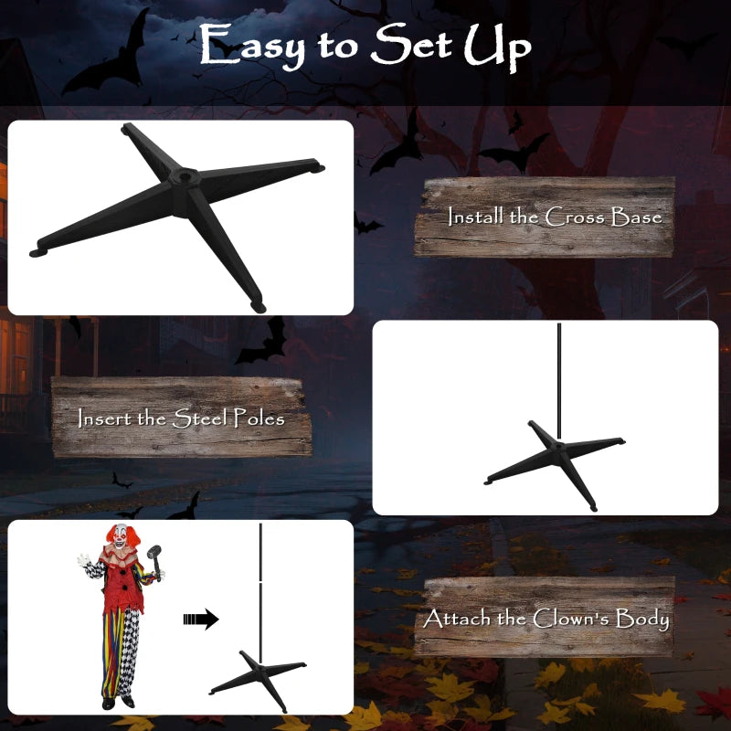 Are you fed up with static Halloween decorations that lack interactivity? Standard decor often misses the mark when it comes to delivering true fright. Upgrade your Halloween setup with the scary Halloween decoration. This 173 cm tall clown reacts to sound, swaying its head and arms to eerie, playful music, creating a spine-chilling atmosphere that captivates and enlivens your Halloween scene.