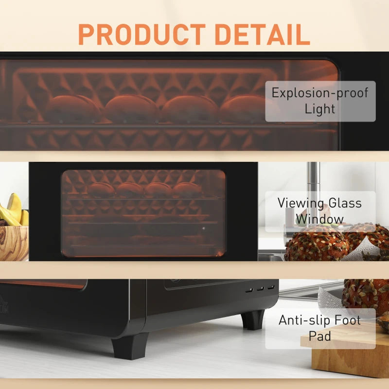 - Temperature range of 40-220°C, 12-hour timer with 16 presets: Customize the heat and cooking duration of the countertop oven to your preference.