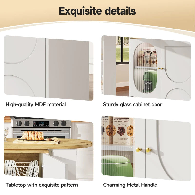 - Generous Storage Capacity: Featuring a three-tier side shelf and two doors with shelves, this table provides ample storage for glasses, dishes, or decorative items, keeping your essentials organized and within easy reach.