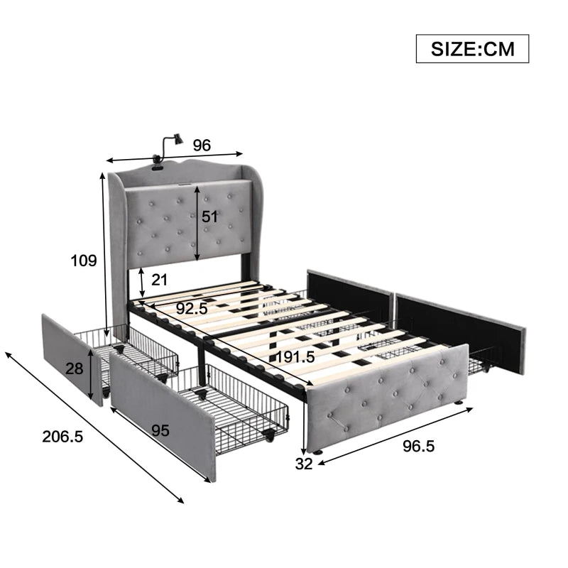- Mattress Size: 190L x 90W cm (not included)