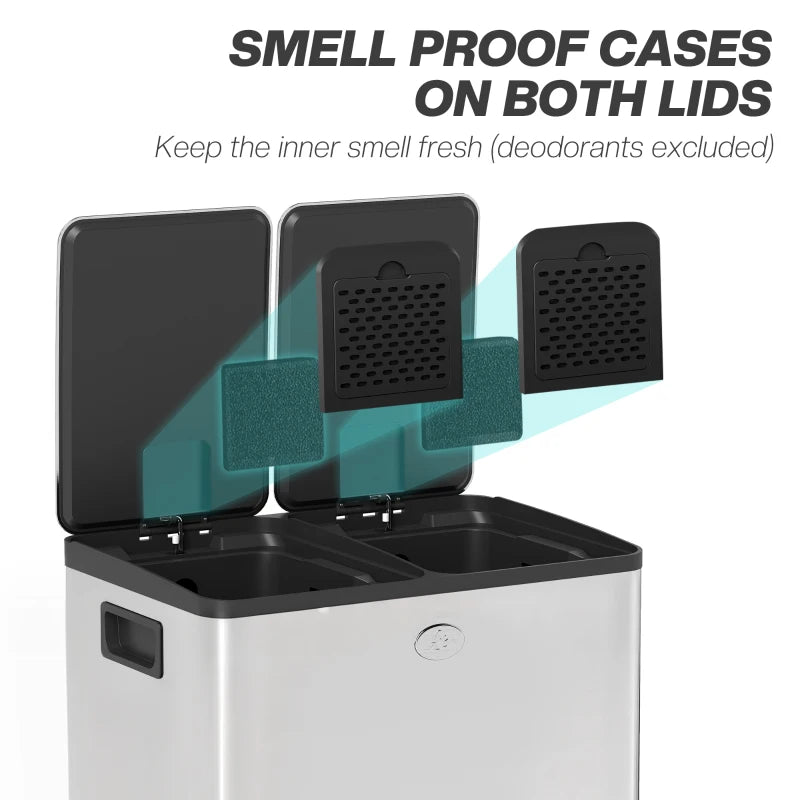 - Stainless steel body that resists fingerprints: This dual bin is built to last, perfect for everyday use. It minimizes fingerprint smudges and can be easily wiped clean for better hygiene. Its sleek and polished look enhances any space.