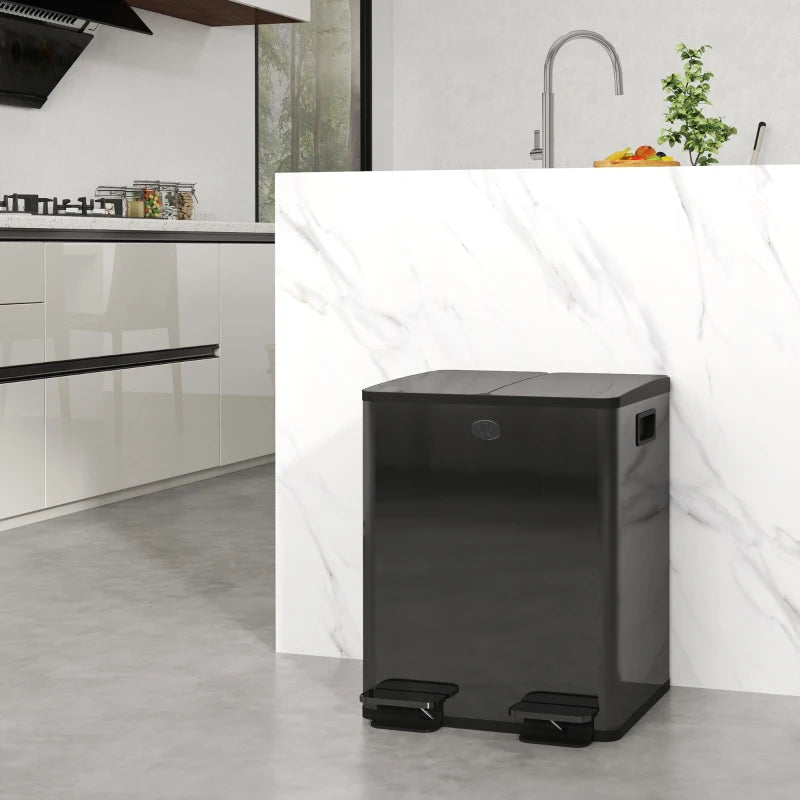 - Stainless steel body that resists fingerprints: This dual bin is built to last, perfect for everyday use. It resists fingerprints and can be easily wiped clean for better hygiene. Its sleek and polished look enhances any space.