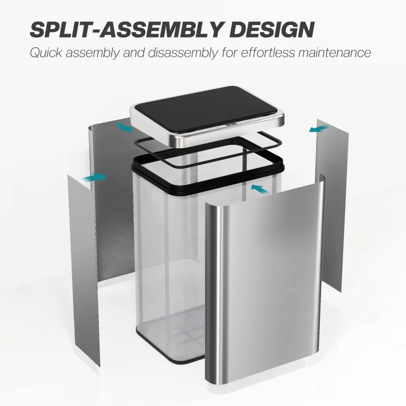Tired of messy hands while preparing food, leaving marks on your bin? Those hard-to-reach dust spots can be frustrating. The sensor bin provides a touch-free solution, opening immediately with a wave. Its detachable design allows for easy assembly and disassembly, while the fingerprint-resistant stainless steel keeps your kitchen bin looking pristine, bringing ease and order back to your space.