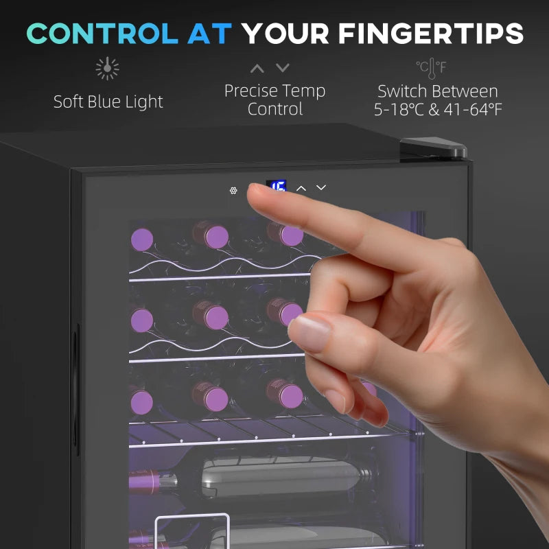 Keep your bottles and more perfectly chilled with this 42L wine fridge. Set the temperature between 5–18°C for optimal cooling of your drinks. It features a double-layer glass door that protects your bottles from harmful light, while the blue light inside allows for easy visibility. The removable shelves can hold up to 16 standard 750ml bottles, ensuring you have plenty of cold beverages available for dinners and gatherings.