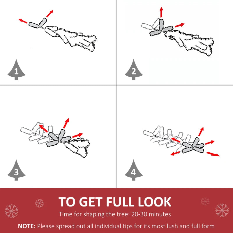 - Dimensions: For a full appearance, be sure to spread out all individual tips to achieve the best look for the tree.