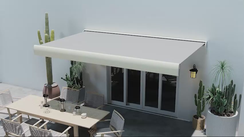 - Full Cassette: Ensures the roller, fabric, and entire arm mechanism are securely protected. The mobile arm seals the cassette upon retraction.