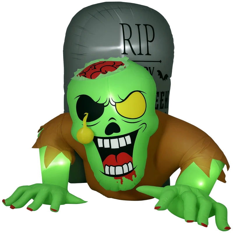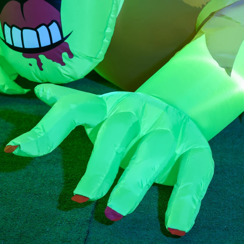 - Four internal LED lights: This inflatable ghost shines brightly in the dark, creating an exciting and captivating ambiance wherever it is placed. The spooky green ghost, with an eye falling out and emerging from a tombstone, offers a fun and unique design.