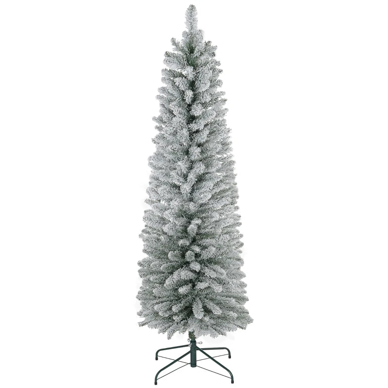 - Snowy pencil Christmas tree design: Features white-covered branches for an elegant appearance. This slim Christmas tree is designed to occupy less space compared to traditional models.