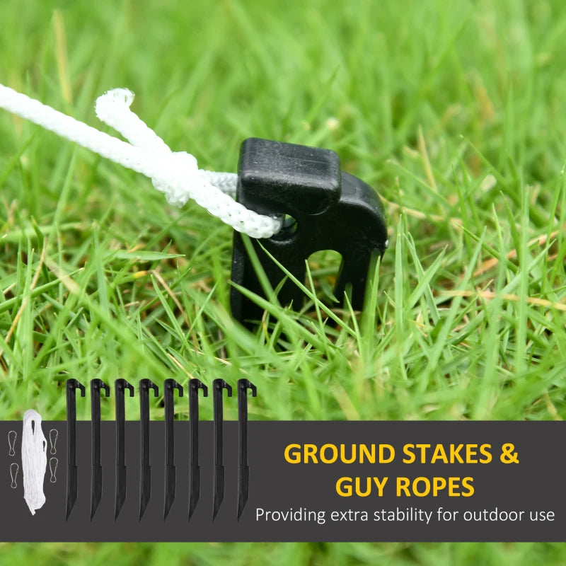 - Includes eight ground stakes and four guy ropes to secure the inflatable to the ground