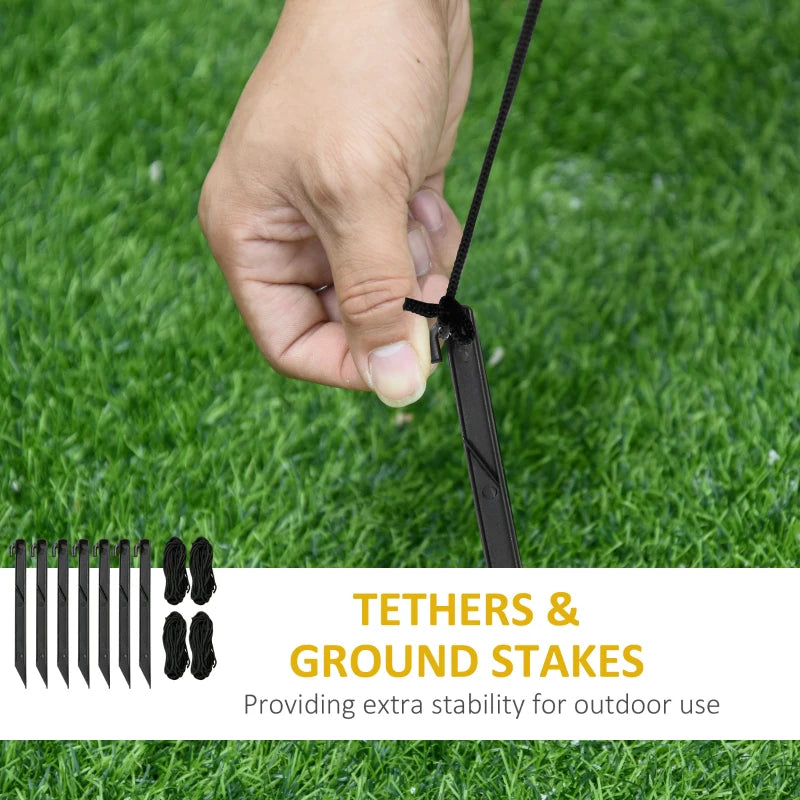 - 7 ground stakes, 4 drawstrings, and 3 sandbags ensure stability and secure positioning.