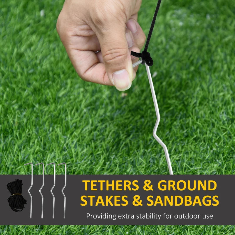 - ACCESSORIES INCLUDED: Comes with a 3m long wire, internal fan, two tether ropes, four ground stakes, and three sandbags.
