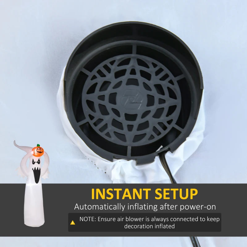 - PLEASE NOTE: THE ZIP AT THE BOTTOM MUST BE CLOSED FOR THIS ITEM TO INFLATE CORRECTLY. SPOOKY FUN: Standing at 6ft tall with a ghost and pumpkin design, it includes an internal fan that makes it sway and float around.