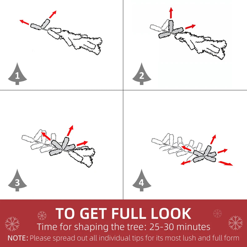 - It is recommended to spend 25-30 minutes fluffing the branches once assembled