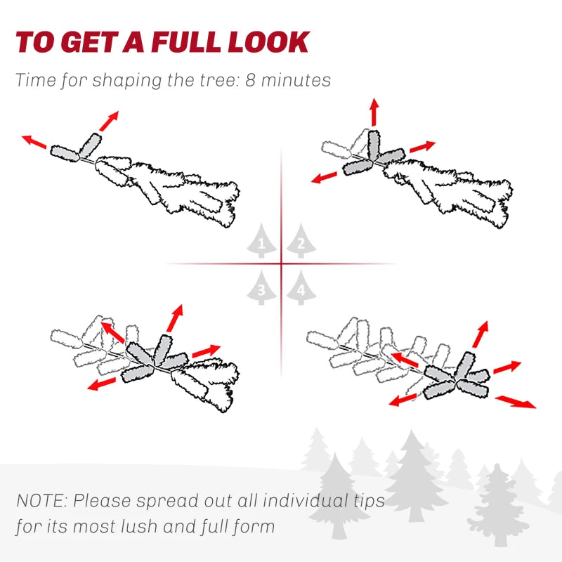 - To achieve a full appearance, please spread out all individual tips for the best look; it is recommended to take about 8 minutes to shape the tree.