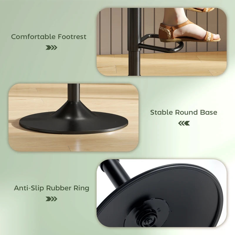 - Rotating steel frame: Features a powder-coated metal for enhanced durability - a robust and supportive base for this adjustable stool set. The 360° swivel allows for free movement.