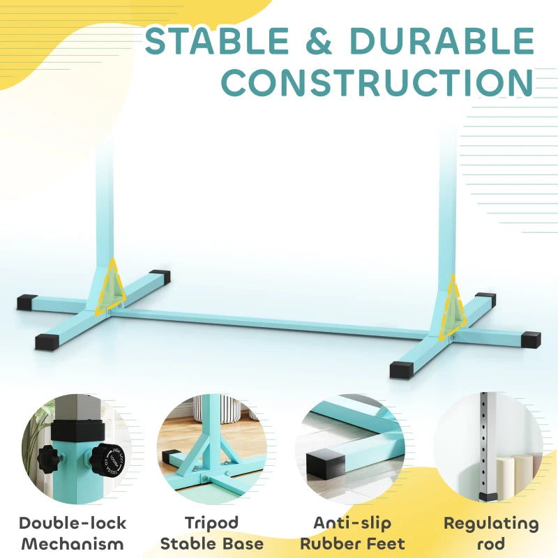 Gymnastics at home? Absolutely with this kids gymnastics bar! Designed to grow with them, the height adjusts across 13 levels from 92€ 150cm, great for all ages and abilities. A strong steel frame and T-shaped base keep it stable through every flip and spin. With its fun light blue colour, it's a stylish way to boost balance, strength and coordination €“ right at home!