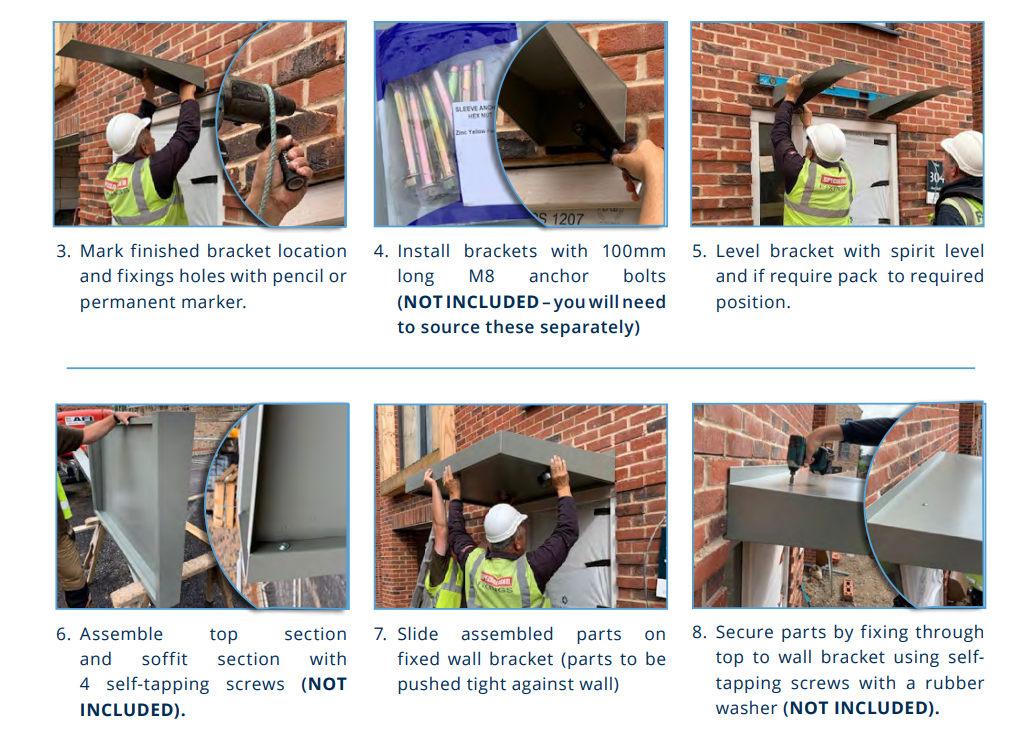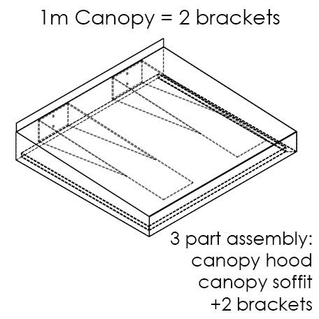 35mm Fasteners (with 15mm washers): Used to fix the canopy to the wall brackets. Approx. 3 fixings per canopy bracket required. Each canopy typically includes 4–5 brackets, depending on the width.