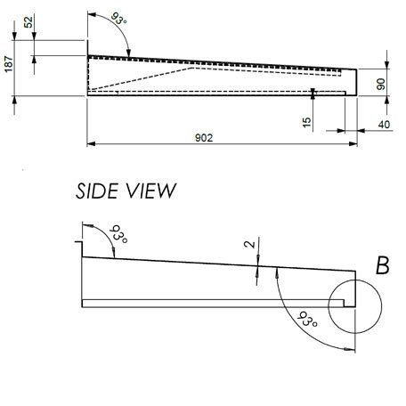The CA160 aluminium canopy has a 160 mm high back section and includes an integral side-drainage gutter outlet. Instead of water running off the front edge like the CA90 and CA120 models, the CA160 channels rainwater to the side, where it is directed down a swaged aluminium downpipe. All other visual and material characteristics remain similar across the range.