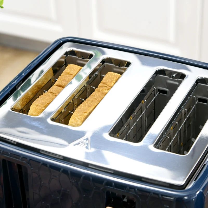 Start creating a coordinated kitchen with this set, which includes a 1.7 litre rapid boil kettle and a four-slice toaster, both featuring a stylish honeycomb pattern. The toaster offers seven browning levels to suit your preference, while the kettle can brew up to six cups of tea, perfect for gatherings with friends. Are you hungry or thirsty?