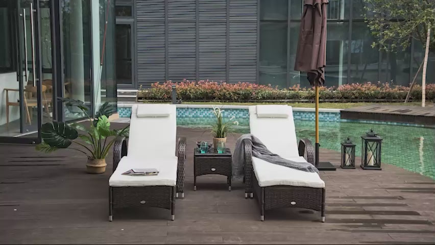 - Complete Set: This rattan sun lounger set includes two garden loungers with wheels and a small glass-top table, perfect for relaxing with a companion.