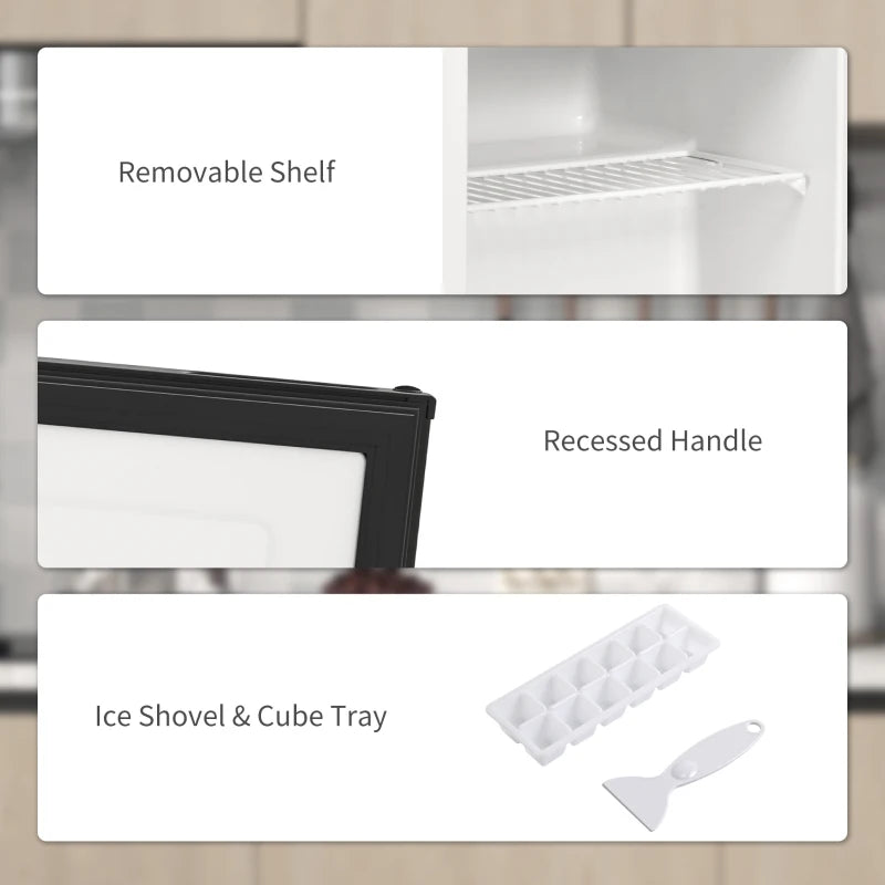 - 35L capacity: This mini freezer offers ample space for storing frozen meals, snacks, and more. Its compact design makes it ideal for countertops, small homes, camper vans, and shared living areas. The removable top shelf allows for two levels of storage.