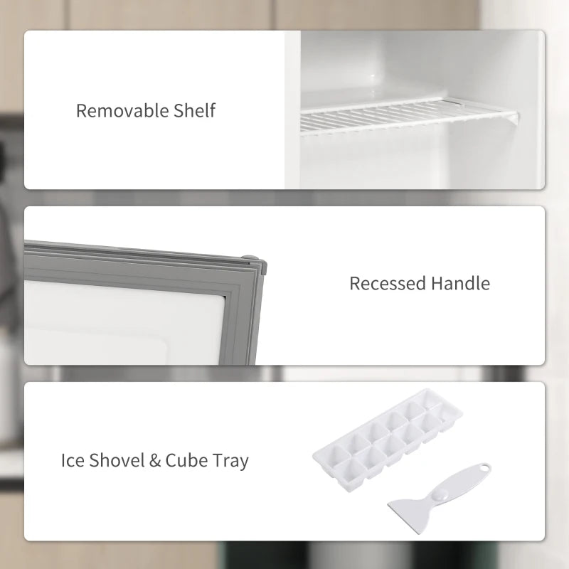 - 35L capacity: This mini freezer offers ample space for storing frozen meals, snacks, and more. Its compact design makes it ideal for countertops, small homes, camper vans, and shared living areas. The removable top shelf allows for two levels of storage.