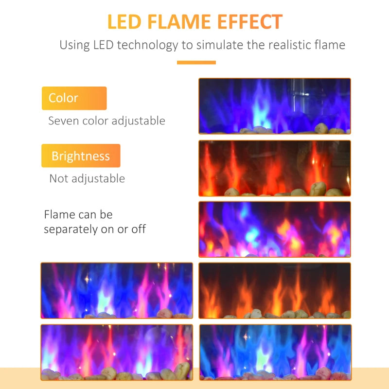 - Realistic LED Flame & Pebble Effect: Enjoy the cozy ambiance of a real fire without the hazards. The LED flames feature seven shimmering colors, and the pebble fuel effect can be used independently of the heat, making it safe for families with children and pets.