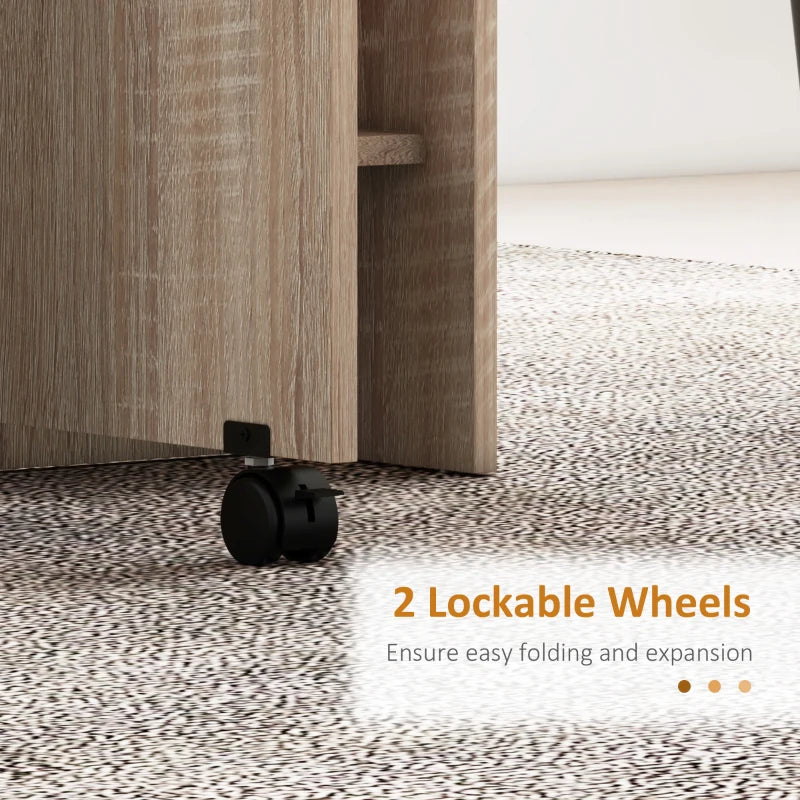 - Two lockable wheels: Each side panel includes a wheel with a brake for effortless folding and unfolding.