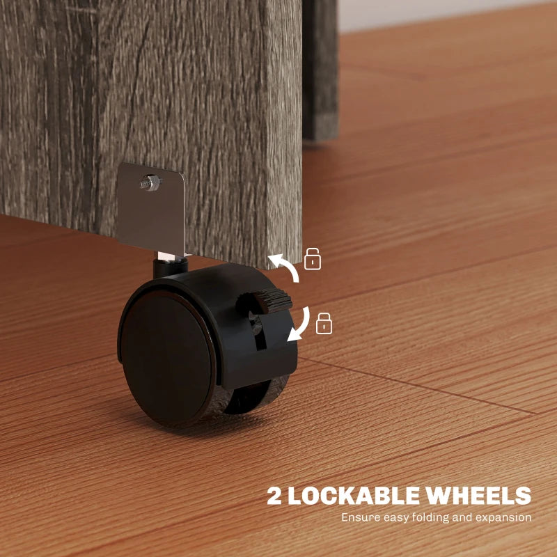 - Two lockable wheels: Each side panel includes a wheel with a brake for effortless folding and unfolding.