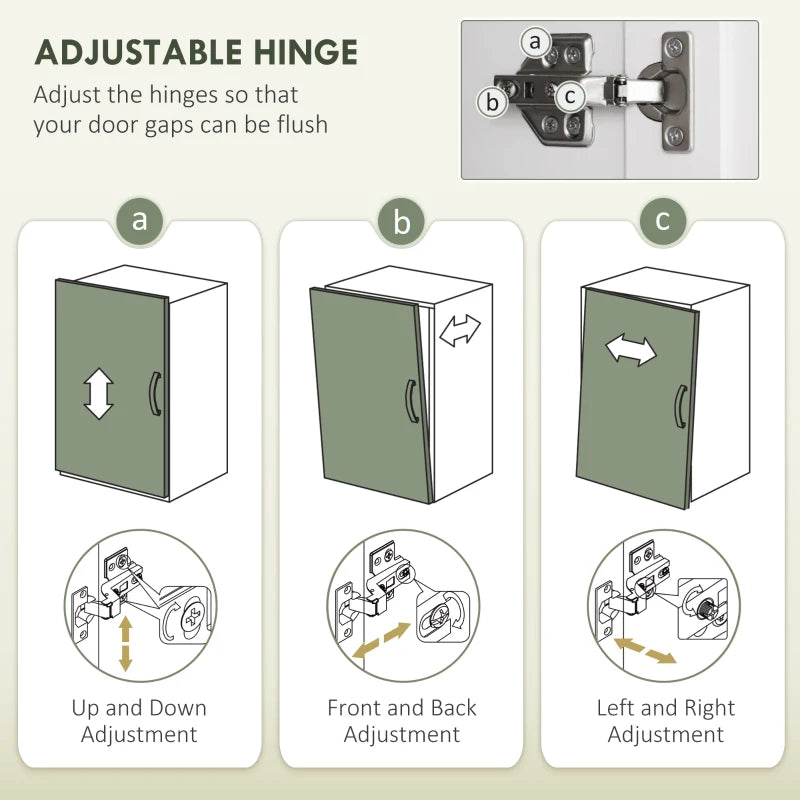 For the culinary enthusiast, the kitchen storage cabinet is a masterpiece of functionality. Tailored for those who revel in the art of cooking, this cabinet offers versatile storage solutions with its top and bottom cupboards, adjustable shelves, and a convenient drawer. Its sleek white finish and silver handles add a touch of modern elegance, seamlessly enhancing your kitchen's aesthetic. Durable and stable, it provides the perfect home for your diverse collection of cookware and ingredients.