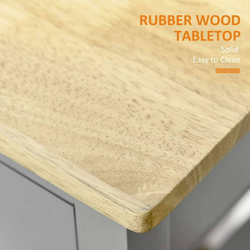 - STURDY WOODEN TOP: A reliable surface for cutting and food prep, featuring a protective finish against minor spills.