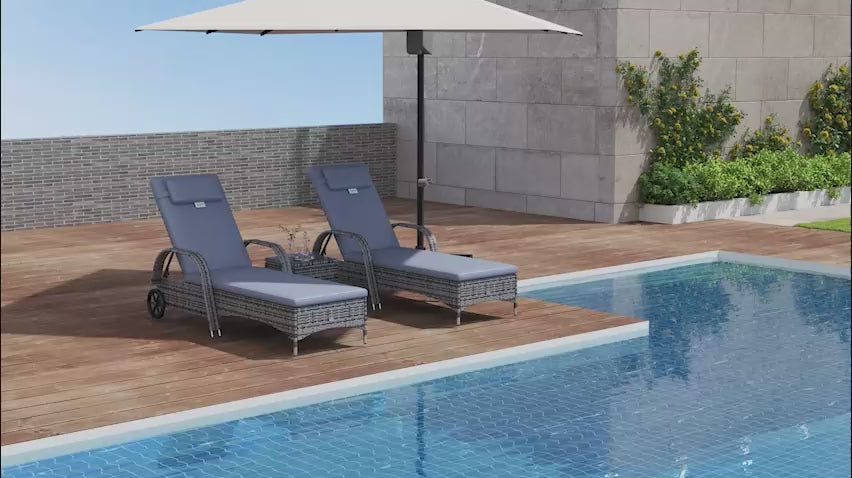 - PATIO LOUNGER DIMENSIONS: Lounger Dimensions: 200L x 73W x 103H cm, Side Table Size: 40W x 40D x 40H cm. Assembly is required.