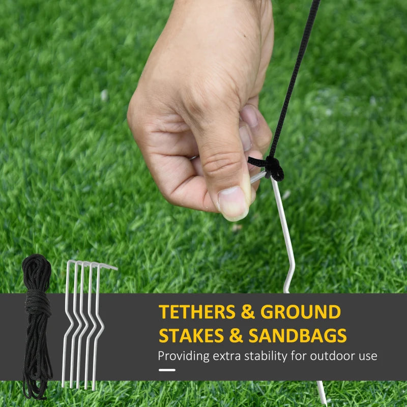 - Included accessories: 2 sets of LED lights, 5 stakes, 3 strings